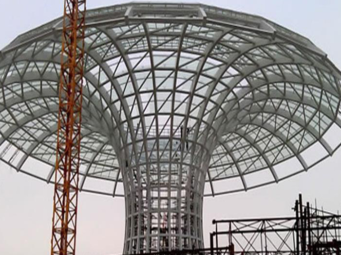 一、 球形东莞网架结构是按照一定的网格形式由东莞网架东莞杆件与实心节点钢球通过高强螺栓连接组合而成的一种空间结构形式。我国于1978年开始从国外引进东莞螺栓球网架结构技术和产品,通过长期实践,作为成熟的东莞建筑结构形式,球形网架结构已在国内外东莞建筑行业得到了十分广泛的应用。其特点为:自重轻、跨度大、平面形状设计灵活、东莞施工定位简单、安装方式多样等。特别适用于大曲率空间结构系统如:桶壳结构、东莞球壳结构、各类东莞建筑造型等。